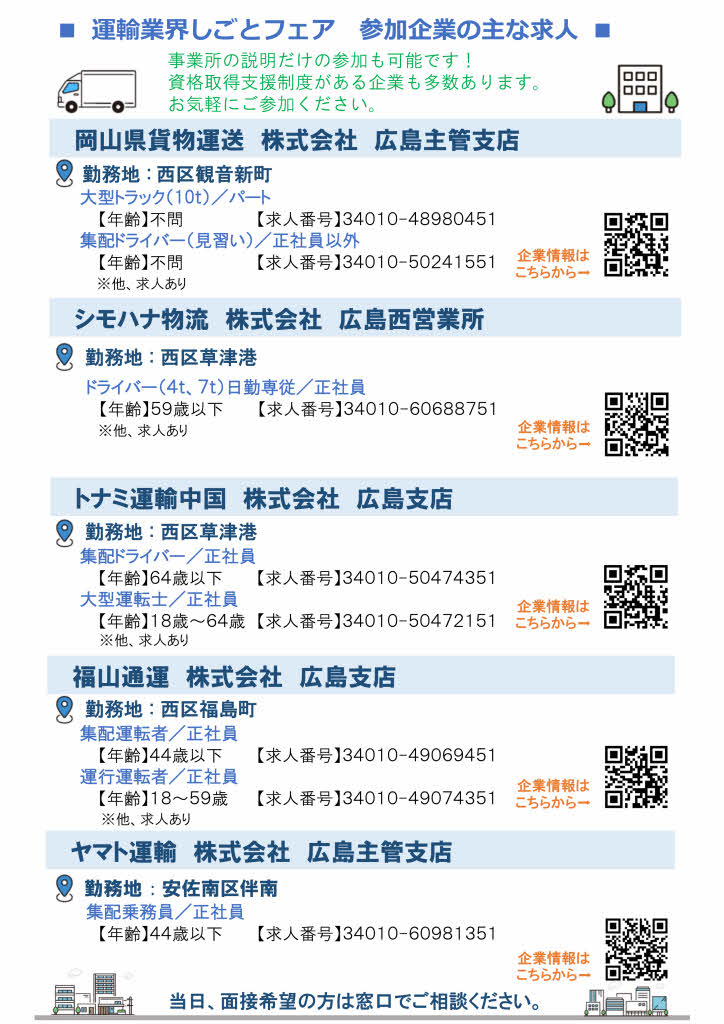 ひろしまエリア『運輸業界しごとフェア』