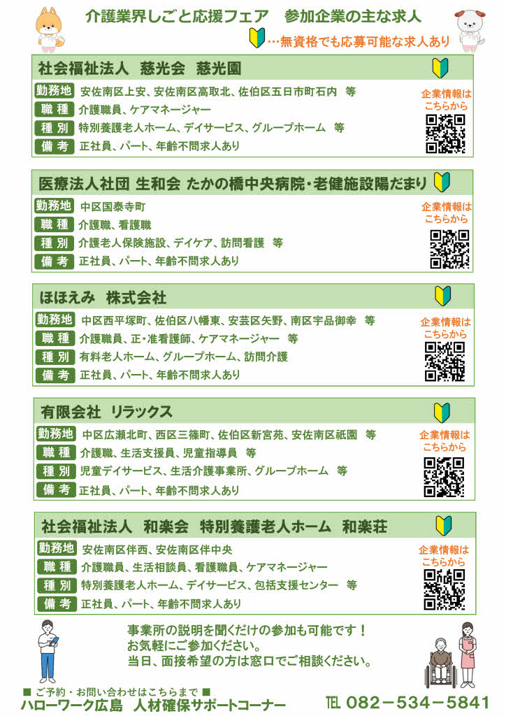 ▶▶13:45~16:00 介護の合同企業説明会・相談会開催!