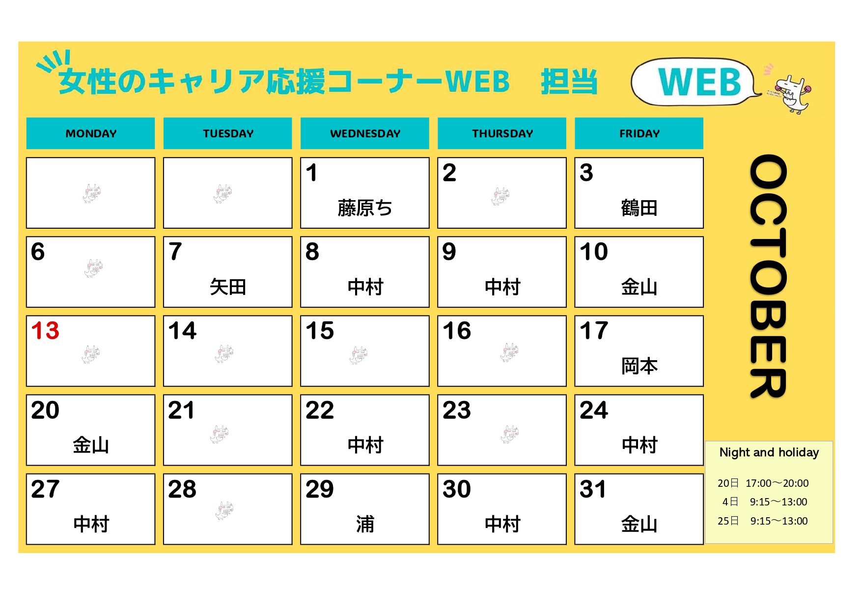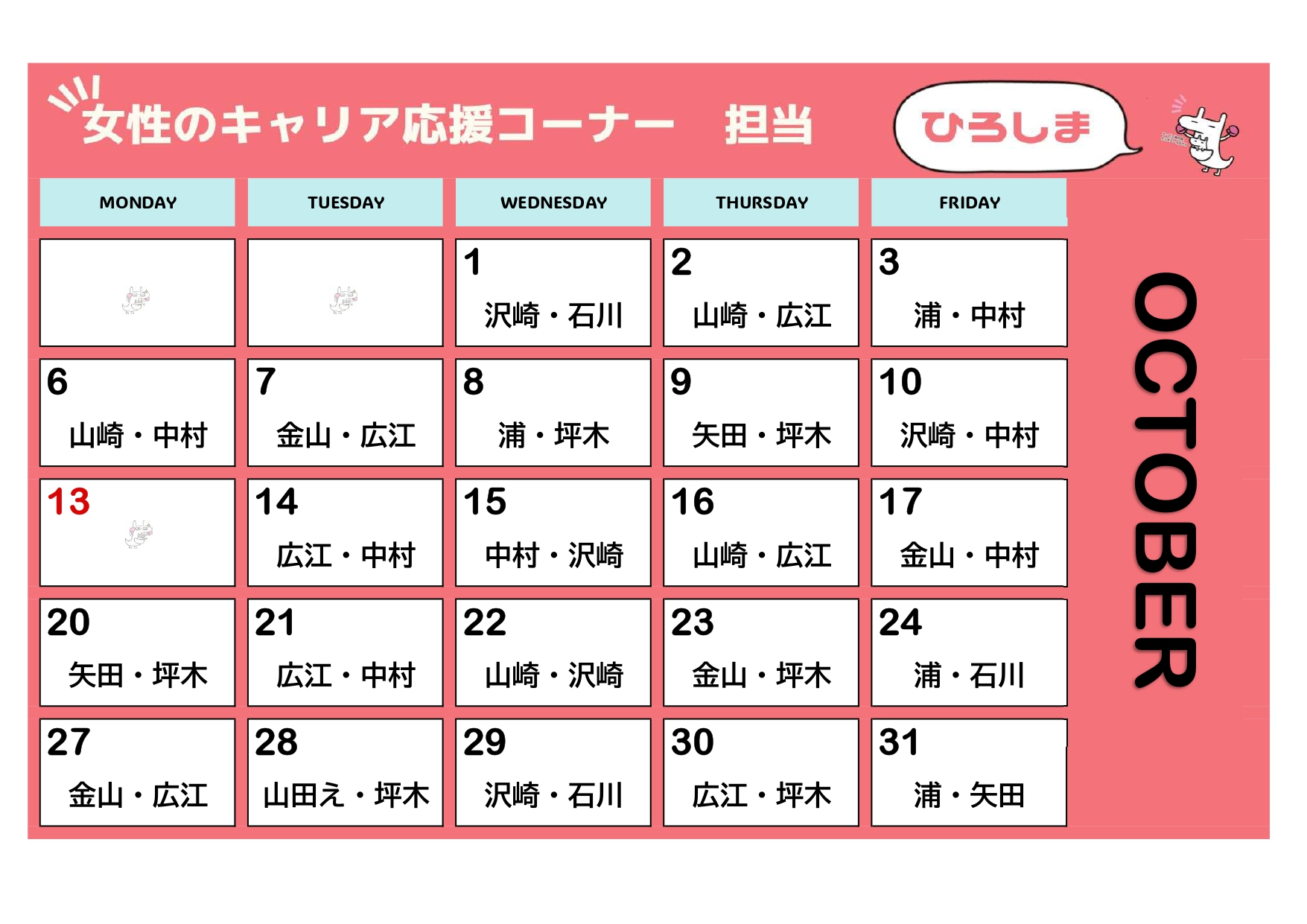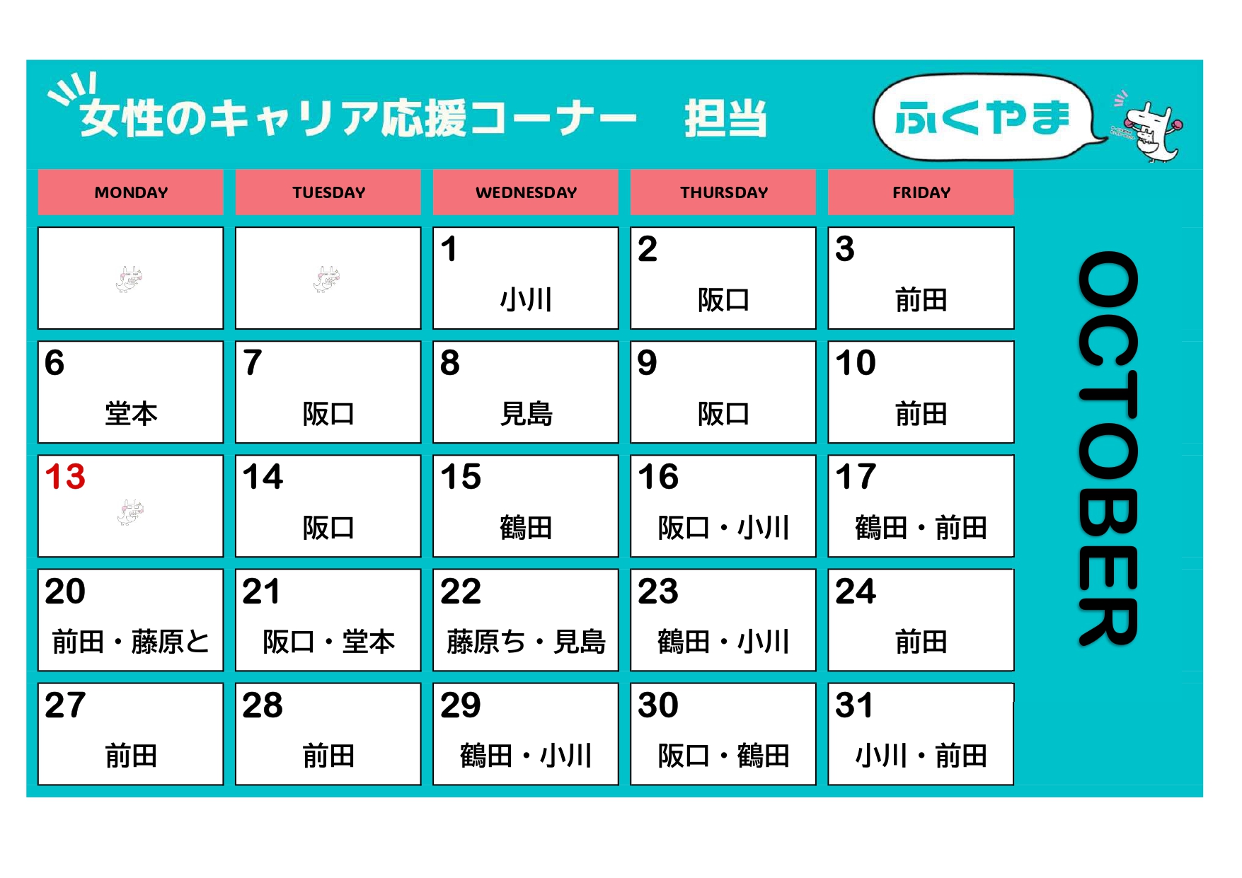 お知らせ【更新しました!】10月担当相談員カレンダー