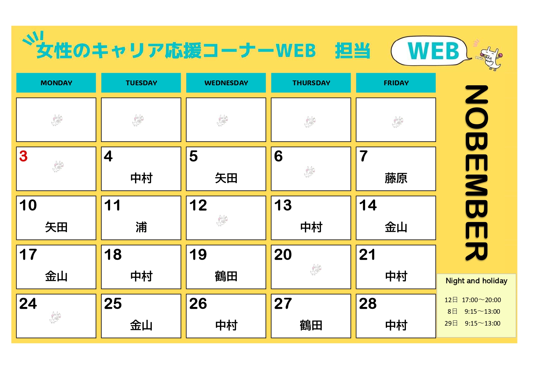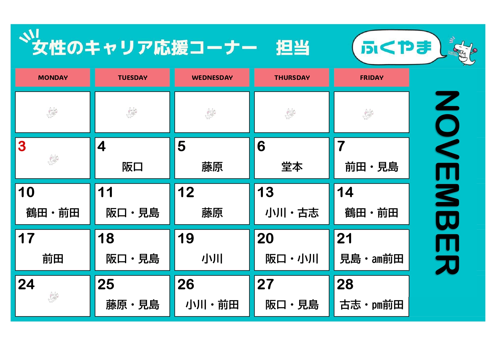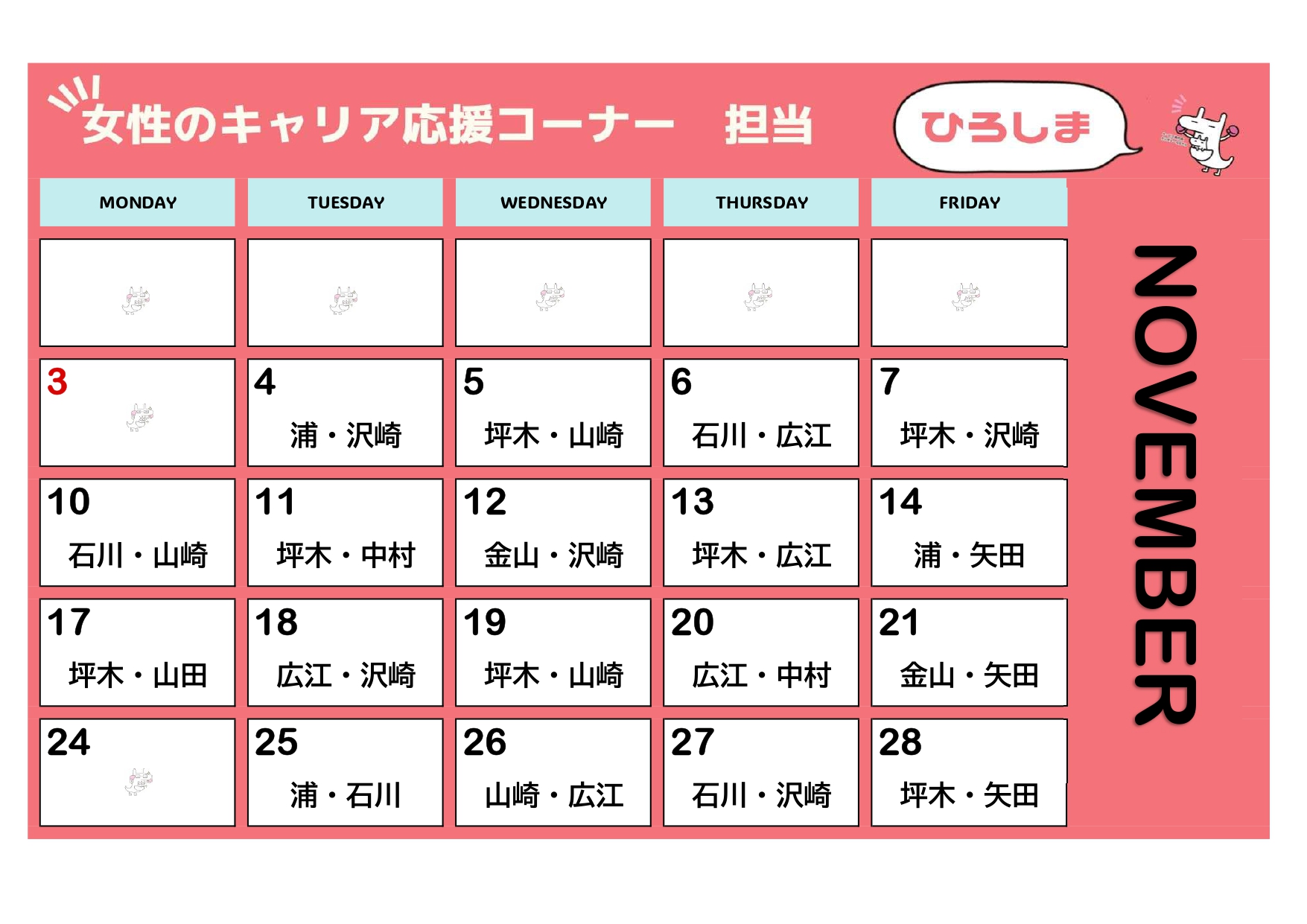 お知らせ【更新しました!】11月担当相談員カレンダー