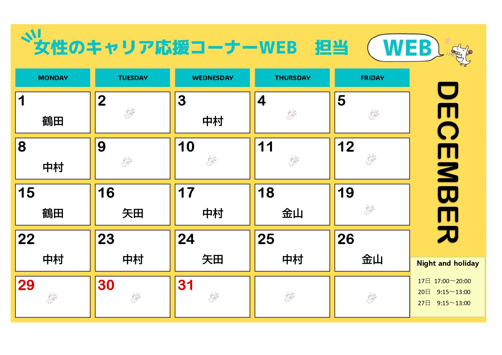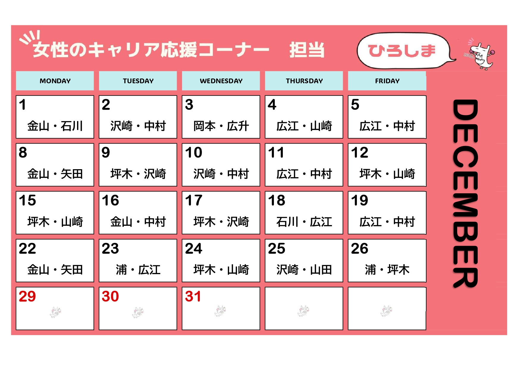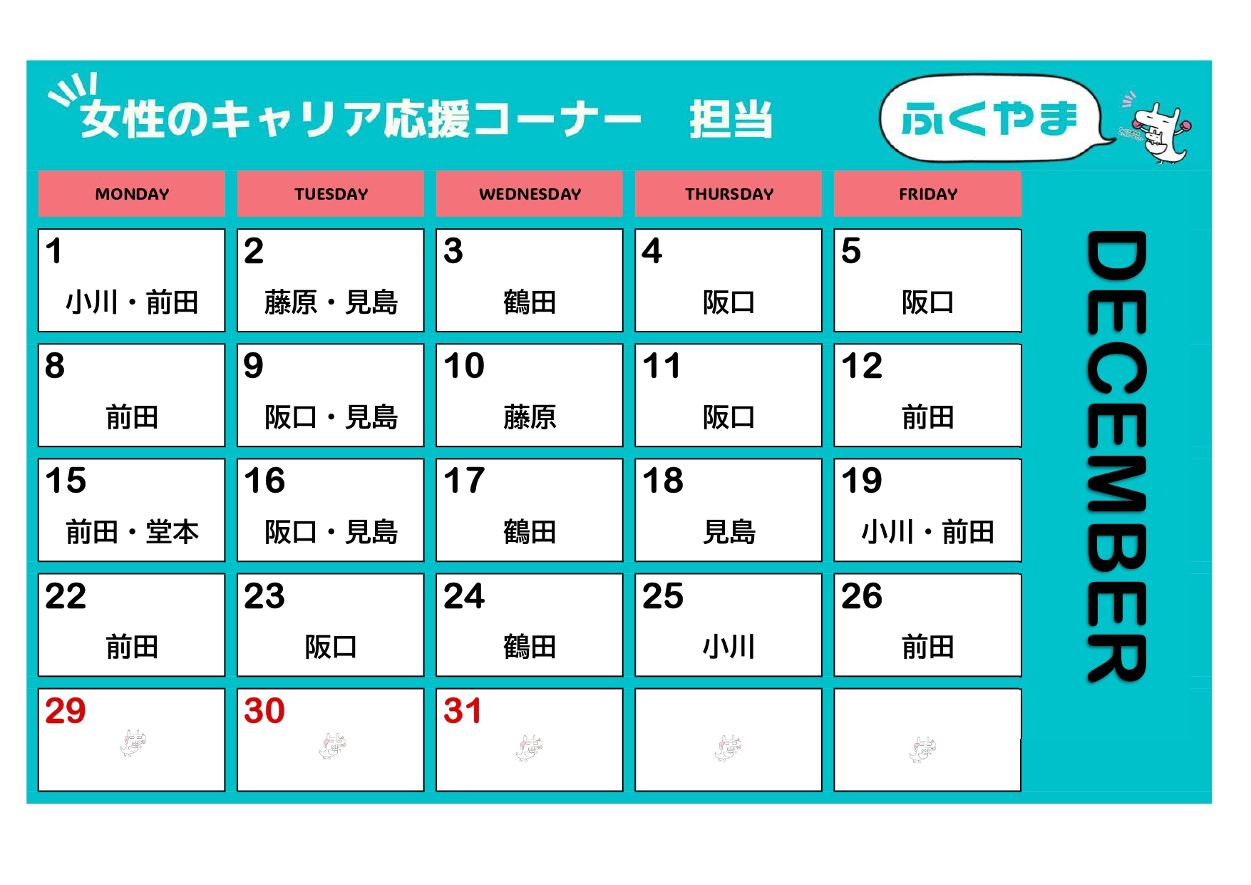 お知らせ【更新しました!】12月担当相談員カレンダー