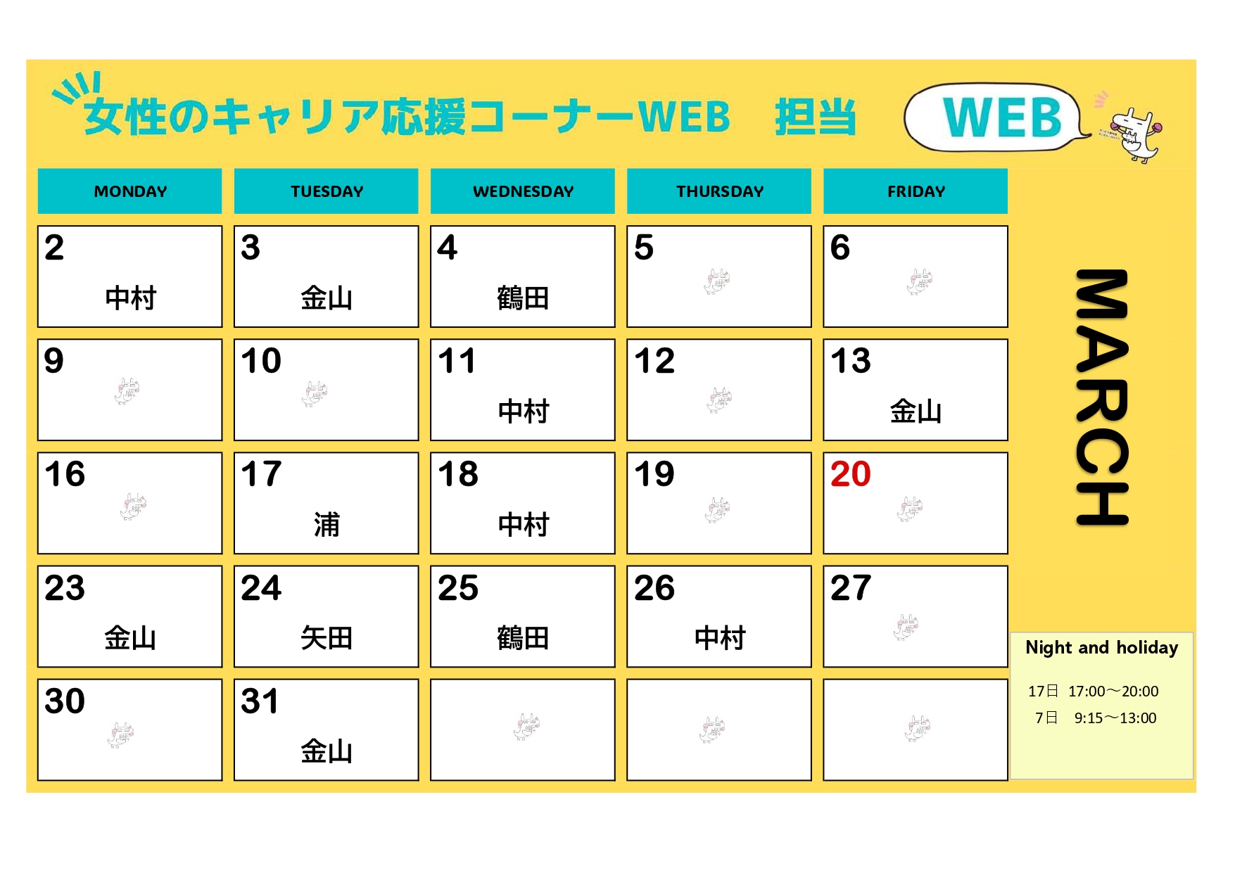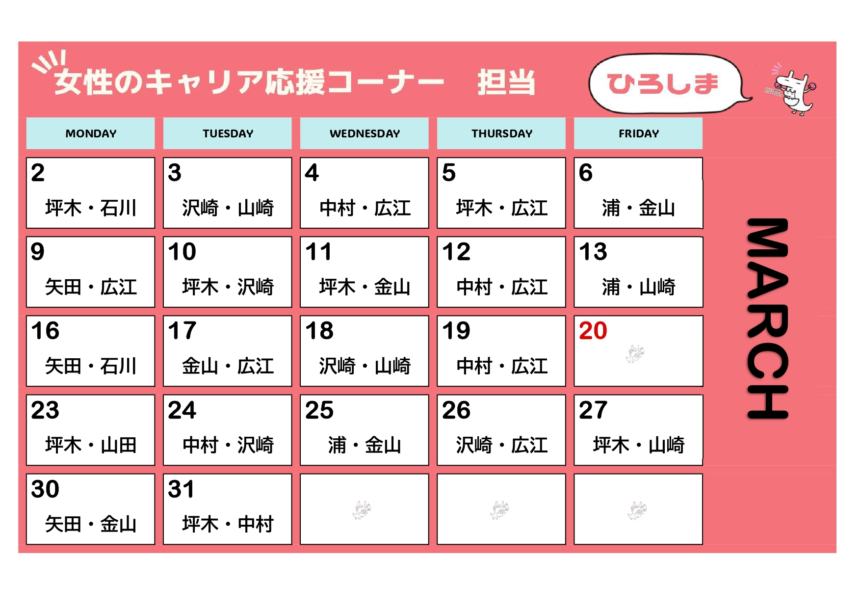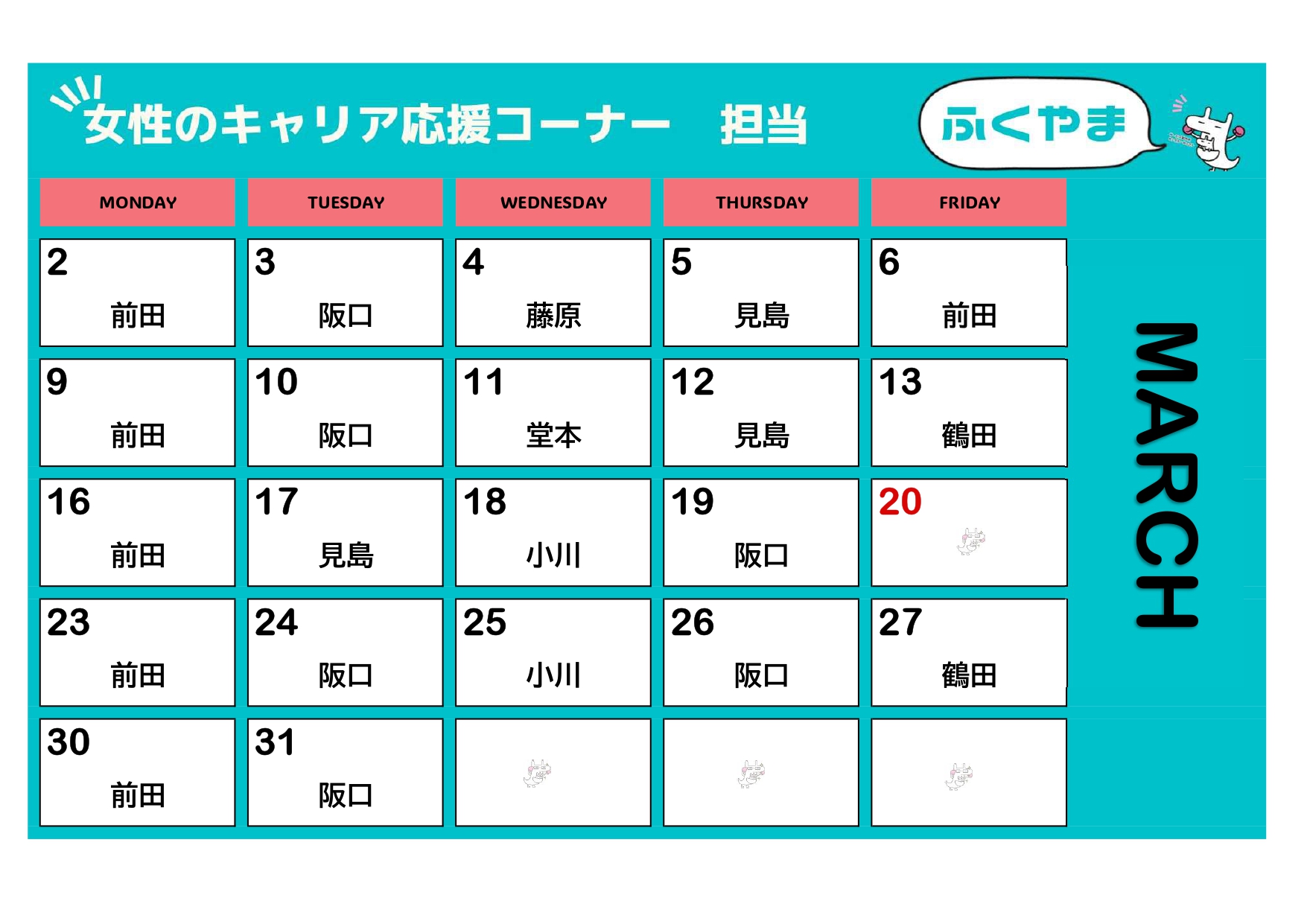 お知らせ【更新しました!】3月担当相談員カレンダー